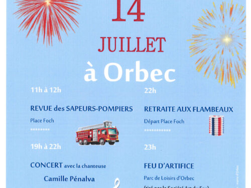 Une belle journée nous attend ! RDV 11h00 à 12h00 pour la revue des Sapeurs Pompiers, Place Foch à ORBEC La soirée sera également animée ...