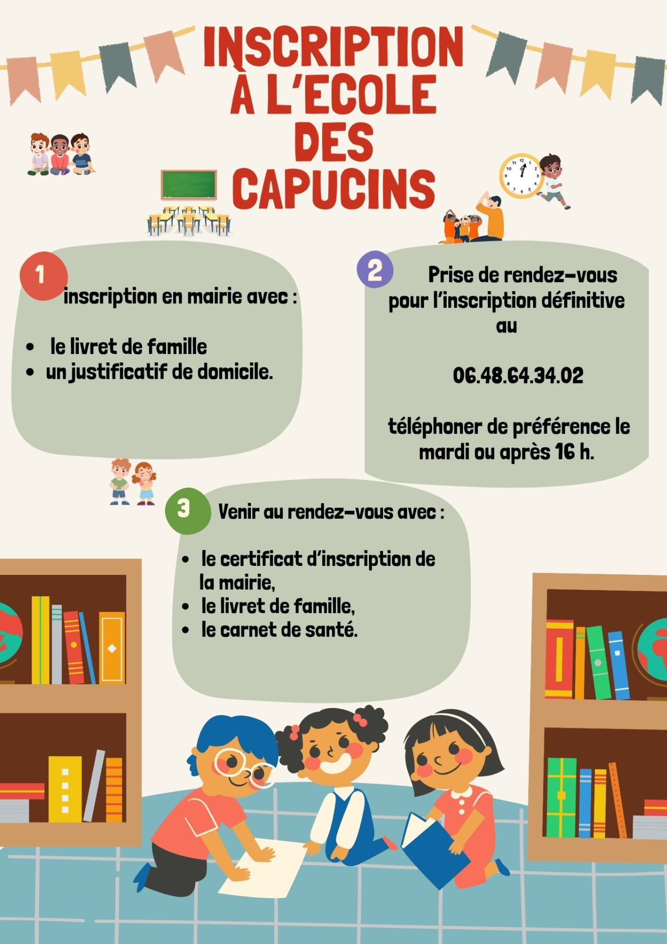 Les enfants déjà inscrits à la maternelle des Capucins doivent impérativement renouveler leur inscription pour la rentrée au CP.